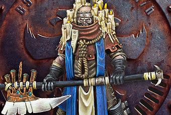 En cuanto a la figura en sí, por reglas es un añadido interesante. Por 210 créditos tienes una figura que para usar solo con los Cawdor, que para empezar funciona como un Campeón adicional sin serlo, ya que puede hacer activaciones grupales como si fuera un Campeón por la regla Iconic Figure. (Por lo demás, a todos los efectos es un Cazarrecompensas) No dispara porque no tiene ni armas de disparo y aunque las tuviera, su HP es de 6+, pero cuerpo a cuerpo es muy bueno (HA 3+, F 4 +2 por su Hacha a dos manos, que hace D2) resiste bastante (R3, H3 y salvación por armadura de 4+ por armadura de caparazón ligera) y un buen conjunto de habilidades: Counter-attack le permite un ataque adicional en cuerpo a cuerpo por cada ataque fallido en cuerpo a cuerpo de un enemigo , Fearsome obliga al enemigo que quiera cargar chequear antes Wil, Inspirational hace que si una figura amiga a 6" o menos tiene que hacer un chequeo de Cl, haga uno de Ld y si lo pasa, es como si hubiera pasado el de Cl y Rain of Blows hace que pueda hacer dos acciones de combate porque en en vez de ser una acción Básica, pasa a ser Simple. Sumamos a eso unos buenos atributos mentales, para ser un Cawdor y un Stimm-slug stash para aumentarle M (De base es 5"), F y R a +2 (Aunque tiene consecuencias...Ver Gangs of the Underhive, pág 136 y las últimas FAQ de Necromunda ), lo que tienes es un añadido muy bueno y asequible para un banda de Cawdor. Soltar 210 créditos incluso para una Escaramuza es un precio aceptable para tener en la banda que de base es la mas barata en costes de las Casas.