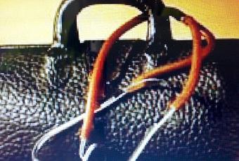 Usa un maletín de cuero negro a la antigua usanza, como aquellos que llevaban los médicos rurales en sus visitas domiciliarias.
