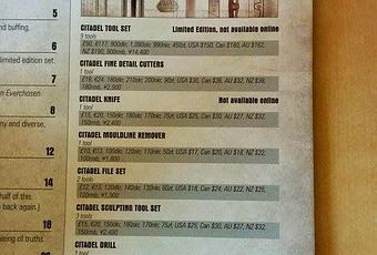 Me acaba de pasar Kit esta imagen y la verdad es que,aunque me lo olía no puedo dejar de estar alucinado con lo que veo.Ayer,nuestro compañero Nicco Sacco colgó en su blog unas imágenes de las herramientas que van a ser la novedad de este fin de semana,pero los precios estaban muy borrosos.Me acaba de pasar una imagen mas clara y sinceramente me hubiera gustado que estuvieran todavía borrosos.Mañana,como ya casi es tradición,haré un comentario y opinión de las novedades,tras estudiar las imágenes,ver precios y demás,pero visto lo visto y dado que conozco bastante del tema de herramientas(De la parte de modelismo y pintura es la que mas manejo porque tuve en su momento buenos maestros),tengo que decir que me parece una pasada el precio que tienen.