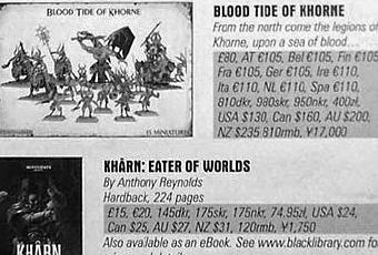No hay sorpresas,salvo quizás por la parte de Black Library donde hay un marcado toque de Khorne...en W40K,con un audio-drama en CD y una novela(Bueno una de las novelas es de justo justo el fina de la Herejía de Horus.Luego hablo de ella en otras entrada).