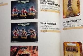 Se acerca el fin de año y siguen filtrándose mas y mas imágenes de la White Dwarf de Enero de 2014.Estas imágenes están sacadas del foro de Dakka Dakka y la verdad es que lo único verdaderamente novedoso de esto es que se ven los precios en euros,al ser una WD alemana,de los lanzamientos de Tiranidos para 2014.No son muy claras las fotos,lo cual es una lastima y exige un cierto esfuerzo(He puesto las imágenes al 100%)pero parece que cuadran con la lista de precios.Parece que la pareja de Carnifex esta a 75 euros(Si mantienen a 40 euros el Carnifex suelto,que esta a 43 euros,es un ahorro.Pero si lo quitan la gente que los quiera nuevos tendra que cogerlos a pares)mientras que el trío de Guerreros Tiranidos a 40 euros y los Guardianes a 55 euros.De hecho,de los lanzamientos y novedades,lo que mas barato sale es el codex por 39 euros y las cartas de poderes psíquicos pr 4,5 euros.Todos los demás precios de los lanzamientos de 40 euros para arriba.En definitiva que va a ser bastante caro,aun sin ver los precios de la tropa base y lo CG,hacer un ejército de Tiranidos o adaptar uno existente al nuevo codex.Pero es lo que hay con GW y los tiempos que corren.