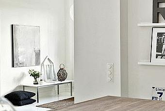 Cada día me entusiasma más la decoración en blanco y madera clara ,es fantástica, se crea una atmósfera serena, limpia, luminosa......ideal para vivir. En este apartamento el blanco esta presente incluso en los suelos, paredes, mobiliario.........PRECIOSO.