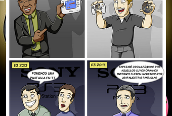 Hoy os traigo una viñeta comica que trata de que Nintendo enseña algo diferente e innovador en la feria del E3 y los siguientes años, las demas compañias siguen su estela e imitan a Nintendo.... ¿A dónde puede llegar la inminente moda de las pantallas?Y si no esta otra tira comica:
