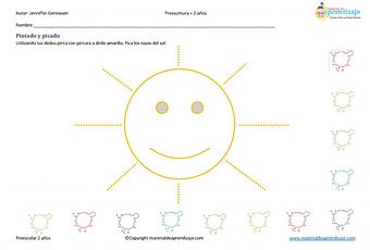 - Utilizando tus dedos pinta con pintura a dedo amarilla. Pica los rayos del sol.