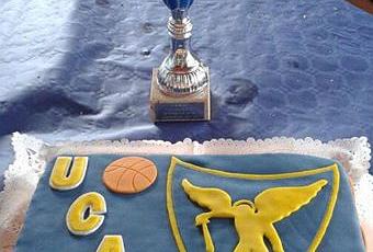 Con las prisas no pude hacer fotos de la tarta, pero bueno, mi amiga me envió la que hizo durante la comida, con la copa que ganaron los chicos.