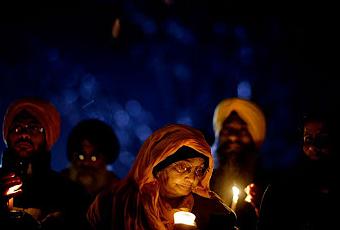 ¿Dónde situaría esta escena? Se lo diré yo, en cualquier lugar menos en EEUU y, en concreto, en Newtown (Connecticut). Se trata de un grupo de Sijs que se unió a las plegarias por las víctimas del tiroteo en la escuela de primaria Sandy Hook (David Goldman/AP)
