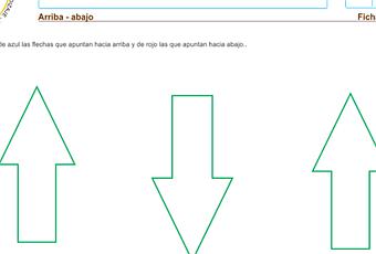 Ficha imprimible de prematemática para realizar con niños de 2 años. Tema: arriba – abajo