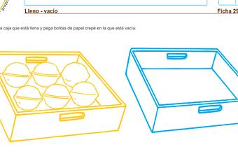 Actividad a realizar: colorea la caja que está llena y pega bolitas de papel crepé en la que está vacía.