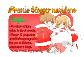 Aprovecho esta entrada para deciros que hasta el 20 de Enero o por ahí voy a abandonar un poco esto... porque soy universitaria y claramente no tengo tiempo ni para respirar. Dulces vacaciones... ¡Pero prometo venir con fuerzas!Hoy, aún así, vengo con un premio que me ha dado el blog de Berielle y que os aconsejo visitar, claramente ^^. Es el PREMIO BLOG NAVIDEÑO!! Esa festividad que llevo sin vivir cuatro años por mis amados exámenes.