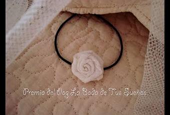 El primero es una Pulsera Flor elaborada con todo mi cariño. Es como las flores que realizo para los portabouquets pero en pequeñita. En el centro tiene una pequeña perlita. Y con el detalle para poder lucila en la muñeca.