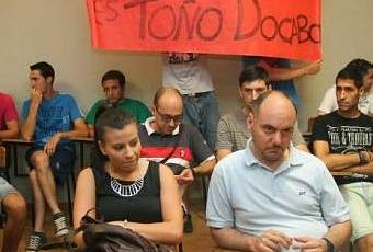 Una de las primeras reuniones después del cambiocon pancarta incluida.