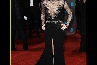 La guapa Olga Kurylenko con un vestido negro de Ninna Ricci.