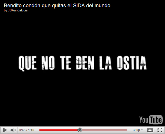 ----------------Y por último, una gamba multimedia. Resulta que las Juventudes Socialistas de Andalucía, con motivo del día internacional en la lucha contra el sida, han realizado una campaña a favor de la utilización del preservativo. Y han hecho un vídeo en el que, aludiendo a la Iglesia, se dice, entre otras cosas, “Que no te den la ostia”.