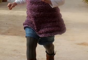 ¡Hola! El otro día en la sesión de fotos matinal, Lucía consideró que lo mejor era correr de arriba a abajo, así que esta es la manera en que os presenta su look. Chaleco/vestido que se le ha quedado corto ;) homemade por su Nanny ; camiseta de cuello alto de KIABI, shorts y leotardos de H&M, y botas de Titanitos. Al final posó... Feliz sábado. Las Lucías.