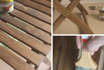 ¡Hola a todos! Hoy me encuentro preparando los muebles de la terraza para las inclemencias del tiempo. Ya han empezado las primeras lluvias así que hoy ha sido el turno de la mesa y 2 sillas que compramos para el pequeño balcón que tenemos en el salón. Se trata de un balcón con unos 4,5m de largo por unos 0,85m de ancho , ocupa el largo del chaflán del edificio, y nos coincide ese espacio con la zona del comedor con salida al exterior. No es un espacio muy grande pero quise aprovecharlo al máximo para disfrutarlo todo el año así que el año pasado compramos la mesa y dos sillas askholmen de ikea , ideal para espacios reducidos.Le estoy aplicando un tratamiento especial que protege e impermeabiliza la madera para la lluvia y también actúa contra los hongos.Se aplica 1 capa y pasadas 12 horas una segunda capa. Se aplica muy fácil porque viene a ser como un aceite , en un acabado mate e incoloro.