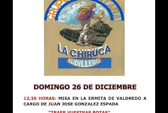Una vez finalizada la temporada 2021 y llegando la temporada y calendario 2022 , el club deportivo Peña La Chiruca presentara a sus socios y simpatizantes las actividades 2022, siempre pendiente en posibles modificaciones pandémicas.El Domingo 26 DE DICIENBRE a las 12;30 el páter de nuestro club deportivo Juan José González Espada, oficializara una misa en la ermita de Valdredo para todos, con la espectacular bendición de botas, el que quiera participar deberá traer su bota habitual de senderismo.