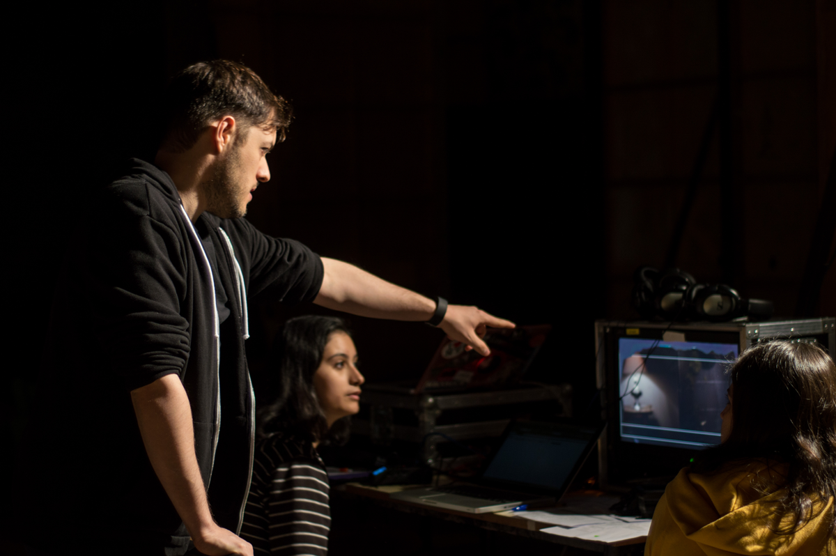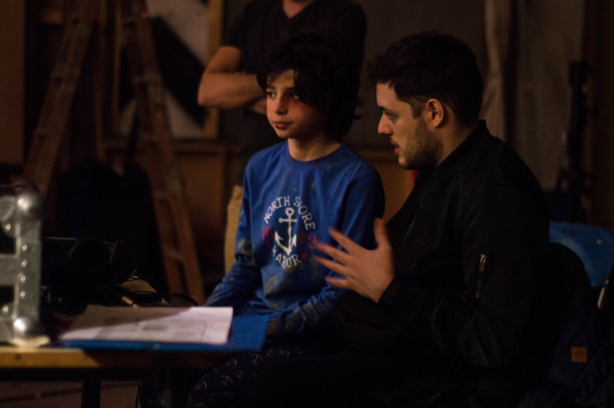 Rush Smith (director) dirigiendo a Hugo Arbues (actor).El proyecto nació cuando Rush, tras escribir el libro, decidió trasladar su idea a la pantalla de una manera más profesional. Para ello contactó con Daniel y Marieta, productores del cortometraje.