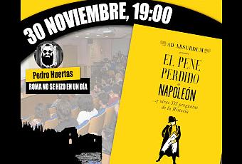 La ciudad de Cartagena fue una de las primeras en ofrecernos la oportunidad de hacer actividades relacionadas con la divulgación histórica. Sin embargo hacía mucho tiempo que no nos pasábamos por allí. Al fin corregimos este error histórico volviendo a la ciudad portuaria para presentar a nuestra nueva criatura El pene perdido de Napoleón y otras 333 preguntas de la historia.El acto tendrá lugar el sábado 30 de noviembre a las 20:00 en la librería Centro (Plaza Juan XXIII, 3). Y contaremos con la participación de un presentador de lujo: Pedro Huertas, del blog Roma no se hizo en un día, que nos acompañará para que pasemos un buen rato hablando de historia y libros y, sobre todo, compartiendo algunas risas.Como siempre, el acceso será completamente libre hasta completar aforo, así que esperamos que podáis acompañarnos todos con vuestros familiares y amigos.