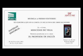 Mañana día 9, en el marco de la Feria del Libro de Madrid, tendrá lugar la presentación de la nueva novela de Mercedes de Vega, El profesor de inglés, editada por Huerga & Fierro. La autora estará firmando ejemplares en la caseta 250, desde las 12 a las 14.30 horas. Aquí podréis encontrar más información sobre su obra.