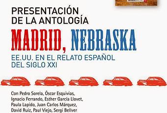 Esta tarde, a las 20.30 horas, en el madrileño Café Comercial (Glorieta de Bilbao, 7) tendrá lugar la presentación de la antología Madrid, Nebraska: EE.UU. en el relato español del siglo XXI. Acudirán Pedro Sorela, Óscar Esquivias, Ignacio Ferrando, Esther García Llovet, Paula Lapido, Juan Carlos Márquez, David Ruiz, Paul Viejo, Sergi Bellver y el editor Pepo Paz.