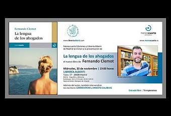 Hoy, 30 de noviembre, a las 19.30 horas, tendrá lugar la presentación del libro La lengua de los ahogados de Fernando Clemot. Será en la librería Alberti (C/ Tutor, 57 de Madrid). El autor estará acompañado por los escritores Carmen Peire y Ernesto Calabuig.