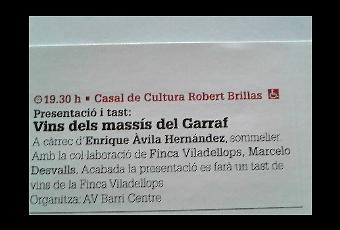 Con la colaboración de Finca Viladellops, Marcelo Desvalls. Acabada la presentación se realizará una cata de los vinos.
