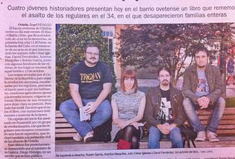 Esta mañana estuvimos en Villafría (Uviéu/Oviedo) presentando nuestro libro “Villafría 1934. Luz en la memoria” en un acto muy emotivo donde tuvimos el honor de contar con la presencia de algunos de los familiares de las víctimas de aquella matanza que un 13 de octubre de 1934 segó las vidas de 32 personas a manos de los regulares.