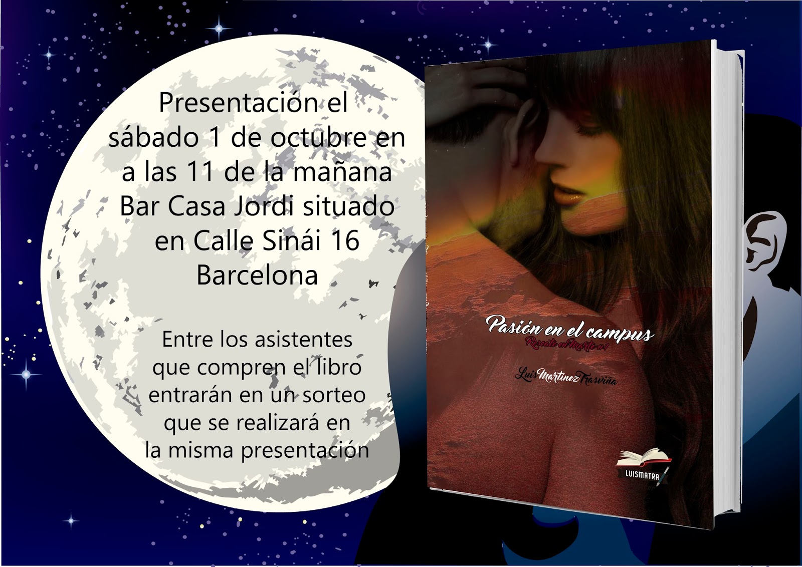 Presentación del libro "Pasión en el campus" del autor Luis Martínez Trasviña, es el sábado 1 de octubre en a las 11 de la mañana en el Bar Casa Jordi situado en Calle Sinái 16 (Barcelona)