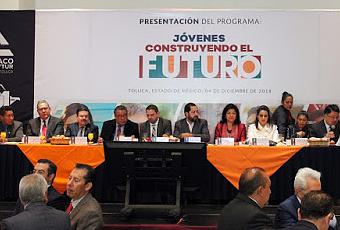 Toluca, Estado de México. La Secretaria del Trabajo, Martha Hilda González Calderón, dio a conocer que las 45 Escuelas de Artes y Oficios (EDAYO) atienden a 221 mil 364 capacitandos, de los cuales, el 53.7 por ciento son personas de entre 15 y 30 años, por lo que se trabajará de manera coordinada con el Gobierno federal para impulsar a los jóvenes mexiquenses para que se inserten al mercado laboral.Durante la presentación del Programa “Jóvenes construyendo el futuro”, que realizó Horacio Duarte Olivares, Subsecretario de Empleo de la Secretaría del Trabajo y Previsión Social (STyPS), González Calderón informó que el Estado de México cuenta con una población de 3.7 millones de hombres y mujeres jóvenes.Reiteró la invitación del Gobernador Alfredo Del Mazo Maza para coadyuvar en este programa y en todos aquellos que el Gobierno federal, particularmente la STyPS, pueda implementar en el Estado de México.“Con enorme entusiasmo, respaldamos el programa “Jóvenes construyendo el futuro”, nos parece estratégico, y lo que nosotros pensamos es que hay jóvenes que quizás en este momento no tienen un empleo formal, sobre todo mujeres, que están en la mayor medida y porcentaje, en el empleo informal, pero que hoy por hoy están capacitados”, dijo la Secretaria.Para tener resultados óptimos en menor tiempo, contamos con una institución que tiene más de 40 años, como es el Servicio Nacional de Empleo, que permitirá que la vinculación sea mucho más efectiva y por supuesto, que estos jóvenes tengan empleos mejor pagados, empleos calificados, que finalmente es el objetivo de todos nosotros, concluyó.Por su parte, Horacio Duarte Olivares dijo que a través del programa se apoyará a 2 millones 600 mil jóvenes en todo el país.Explicó que 2 millones 300 mil personas serán ayudadas a través de la Secretaría del Trabajo y Previsión Social para que se capaciten y se puedan integrar al sector laboral y a 300 mil se les ayudará con una beca para que continúen con sus estudios.Éste es un programa que busca incentivar la economía y apoyar a quienes no estudian y no tienen un empleo.En el evento estuvieron presentes empresarios, líderes sindicales y servidores públicos de los tres niveles de gobierno, convocados por la Cámara Nacional de Comercio, Servicios y Turismo del Valle de Toluca (Canaco-Servytur).