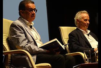 “Escritor de raza como dice el tópico, escritor de sangre, escritor vocacional, escritor que no concibe el mundo si no puede escribirloy esos mil alfileres clavados en las yemas de tus dedos, se han convertido en más de seiscientas páginas de una magnifica novela que retrata lo más difícil de retratar, que es una época y además una ciudad por fuera y por dentro como es la Barcelona de principios del siglo XX, la Barcelona de la semana trágica, de las revoluciones, del esplendor del modernismo”. “Un libro que retrata una Barcelona magníficamente descrita y que no pierde nunca el pulso narrativo y que goza de contar con magníficos personajes que no se van a olvidar fácilmente porque son personajes que viven anclados en la condición humana, no siendo personajes planos y si muy humanos que viven las contradicciones de su época”. Fueron las palabras que el presentador pronunció sobre El pintor de almas.A la pregunta de por qué esta época y esos momentos, el autor respondió que “Barcelona es la ciudad del mundo que más patrimonio modernista tiene y sin embargo todas las novelas que hablan de la época o pasan por encima se centran mucho en Gaudi dejando de lado otras cuestiones o personajes yyo echaba en falta una visión en conjunto de todos los arquitectosque crearon la Barcelona modernista. Es a partir de ese modernismo en general cuando te das cuenta de que hay un caldo de cultivo para intentar componer una gran historia”. Seguidamente Paco Robles explicó al público presente que estábamos ante una novela que no es solo de amor a pesar de que este sea un elemento que está presente a lo largo de toda la novela. Es una novela social donde el autor refleja a la perfección hundiéndose en la sociedad para explicar que hay en ella a lo que Falcones respondió “que para que el autor traslade al lector a una determinada época que no conoce, tiene que mostrarle todo aquello que resulte tan interesante como para que el lector se instale en ella.“Este libro no está terminado como obra artística completamente hasta que el lector con su imaginación termine de componerla. Si al lector no le das un fundamento como para que imagine aquello de lo que estás hablando no llegará a esa empatía que es necesaria con el autor”.Continuó la presentación con la charla entre Paco Robles y Falcones hablando de las condiciones laborales de la época, de la salud, la comida y de un tema como el abandono de los niños, un asunto que junto con el activismo de la mujer en un mundo donde esta tenía muy poco protagonismo, eran una de las dos cosas que más le había sorprendido al autor a los largo de la búsqueda de documentación para la novela. Se habló de los personajes que componen la novela: Dalmau, Enma, Don Manuel, Truchero, Doña Josefa, Montserrat, un grupo muy variopinto a través de los cuales el autor retrata las peculiaridades de la sociedad.Terminó el acto con varias preguntas y curiosidades que el público pudo hacerle al autor y donde irremediablemente surgió el tema del independentismo y algunas puntualizaciones sobre la época como la comida, la lengua catalana, etc.