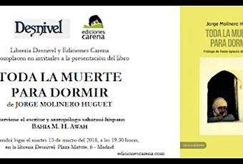 El lunes 12 de marzo a las 19:30h estará en la Librería Desnivel Jorge Molinero Huguet, presentando su libro "Toda la muerte para dormir", novela que recrea la vida del Fundador del Frente Polisario Luali Mustafa Sayed.