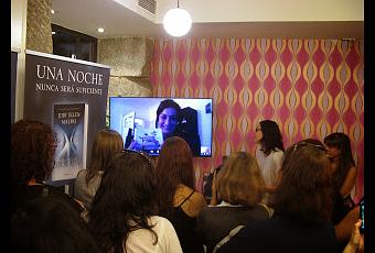 El local estaba a reventar, todas estábamos expectantes por la aparición de la propia autora que se conectaría a través de Skype desde su casa en Londres. Y aunque hubo varios problemas técnicos (ya se sabe, todo lo que sea tecnológico es susceptible de no funcionar) se pudieron resolver con rapidez. Durante la conexión tuvimos a alguien de la editorial Planeta tanto haciéndole preguntas como traduciendo las respuestas del inglés al castellano, algo que se agradecía ya que, aunque más o menos se la entendía bien, el sonido no era demasiado bueno. A su lado también estuvo Silvia C. Carpallo, la escritora del libro El orgasmo de tu vida, que estuvo pendiente de todo.