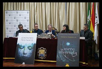 Llegado el turno de Miguel Ángel Matellanes, editor de Algaida, este presentó en primer lugar el premio de novela joven de Sevilla, La torre invertida y cedió la palabra a su autora, Tania Padilla para que explicara su obra.