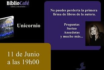 El sábado 11, en el Bibliocafé, Mr. Sandman, Sylvia y yo presentaremos la edición mejorada de Unicornio, la primera parte de la saga Mirage. Podréis adquirir el libro para que os lo firme, y habrá sorteos y otras sorpresas. Será a las 19:00 - ¡¡no os lo podéis perder!!