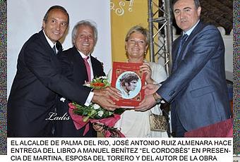 Tan contento estaba Manuel Benítez con la publicación de este libro sobre su vida que asistió a la presentación del mismo acompañado de su esposa Martina y sus cinco hijos. El acto, presidido por el alcalde, José Antonio Ruiz Almenara, se celebró en ´Palma del Río, en la explanada de la ermita de Ntra. Sra. de Belén, Patrona del pueblo y donde “El Cordobés” y Martina contrajeron matrimonio hace treinta y cinco años.Este libro lo ha editado el Ayuntamiento de Palma del Río, cuna del V Califa del toreo, con motivo de haber cumplido el diestro setenta y cinco años. Numeroso público se dio cita en el lugar y disfrutó sobremanera cuando Manuel Benítez, con su peculiar estilo y simpatía, tomó la palabra para agradecer el gesto del Ayuntamiento hacia su persona.