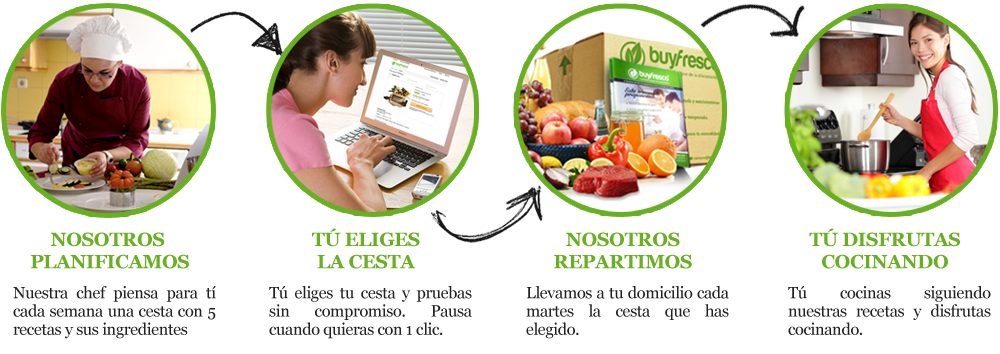 Que hay que hacer para comprar una cesta buyfresco??Selecciona la cesta que quieres (single, pareja o familia), ajusta el número de recetas que quieras, elige la franja horaria de tu reparto, introduce tus datos de pago… y listo! Ahora puedes abrir un vino y bailar el hula hoop...tu compra semanal está en camino.