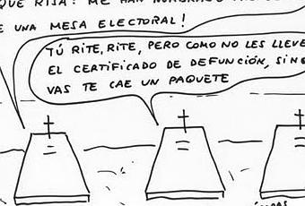 Junto con la carta, me mandan un librito donde entre otras cosas me dicen que si no me presento estoy cometiendo un delito e incurriré en pena de privación de libertad de 14 a 30 días y multa de dos a diez meses. Esta es nuestra democracia. Si no te presentas en la mesa electoral a ejercer tu obligación con el sistema democrático, arrestado. A mi muy justo, lo que se dice justo, no me parece. Peor me parece (por ejemplo) conducir borracho y lo resuelven quitándote puntitos del carnet de conducir.