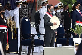El presidente Pedro Castillo participó esta mañana en la ceremonia de clausura del año académico 2021 de la Escuela Nacional de la Marina Mercante.