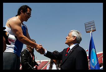 El Presidente de la República Sebastián Piñera participó entusiastamente de la jornada inicial del atletismo en los Primeros Juegos Deportivos Nacionales, a la que asistió poco después del mediodía del sábado, prolongando su presencia por más de una hora.