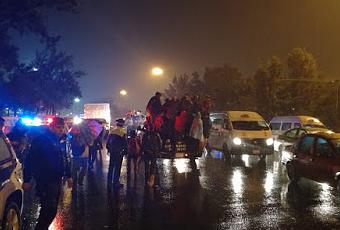 Toluca, Estado de México, 14 de junio de 2018. Elementos de la Secretaría de Seguridad prestan auxilio a la población que se quedó varada a consecuencia de la precipitación pluvial en los diferentes municipios del Valle de México.Entre otros puntos, en el municipio de Tultitlán sobre la vía José López Portillo, a la altura de un centro comercial; aunque el nivel del agua descendió ya, de 50 a 25 cm, se continúa apoyandoa la gente para cruzar la parte que se encuentra inundada.En el municipio de Nezahualcóyotl también elementos de la Policía Estatal, mediante las unidades, trasladan a los ciudadanos que requieren de llegar a sus lugares de destino.Al respecto y hasta este momento la Secretaría de Seguridad, a través de carros radio patrulla y camiones Kodiak, ha brindado apoyo a más de 2 mil 500 personas.En el municipio de Tultitlán se atendieron aproximadamente a mil 400 personas y en Nezahualcóyotl se ha apoyado, a cerca de mil 200 ciudadanos.