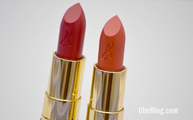El diseño del envase es especialmente todo un acierto, aparte de lo bonito que es, incorpora un sistema patentado por ellos de girar y hacer click que consigue que el labial permanezca cerrado herméticamente y no se salga la tapa.De entre las muchas opciones de tonos disponibles en la colección me decanté por estos dos: