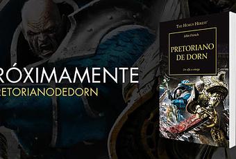 Publicado originalmente a primeros de 2017 bajo el título de Praetorian of Dorn por parte de Black Library, ha salido en varios formatos tanto físicos como digitales, ademas de en forma audio-libro, pero pronto estará en físico y digital en español. Pretoriano de Dorn narra el primer intento serio de penetrar las defensas del Sistema Solar, cuando una amenaza muy especial acecha las defensas diseñadas por Rogal Dorn, Primarca de los Puños Imperiales, no solo desde fuera, sino también desde dentro. La Legión Alfa está detrás y sus planes dentro de planes pondrán a prueba una mente preparada para lidiar en una guerra convencional contra la menos convencional de las formas posibles de luchar.