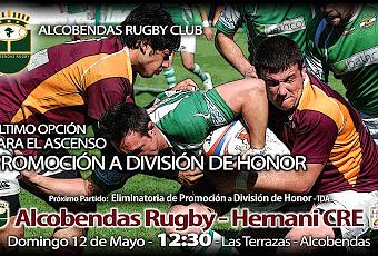 Promoción División de Honor/División de Honor B Partido de idaALCOBENDAS RUGBY - HERNANI C.R.E-Campo: LAS TERRAZAS Alcobendas Domingo, 12:30 h. Árbitro: NIEVAS (Andalucía)