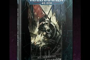 De primero tenemos un nuevo suplemento (De los cuatro que se muestran) que este caso es de zona de guerra. War Zone Charadon Act 1: The Book of Rust es una nueva campaña que empieza cuando Typhus de la Guardia de la Muerte parece haberse encaprichado con el Mundo Forja de Metalica y lanza sus fuerzas contra el. Además de la Guardia de la Muerte y del Mechanicum, junto con sus aliados de las Casas de Caballería (Knights Imperiales), los Eldar Oscuros se meten en medio a ver que pueden pescar a río revuelto.