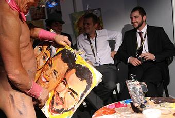 Su prodigioso talento llamó la atención de su eventual benefactor, Sexpo en Australia, donde contó con su trabajo y la realización del mismo. Um, quizás por eso él lo llama el arte del performance. A veces se masturba para mantener la rigidez de su brocha, le dijo al Daily Beast.