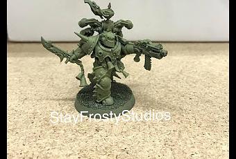 Tal como se dijo ayer, la Guardia de la Muerte va ser el primer grupo de marines del Caos que va a tener sus propios "Chicos Grandes" con servo-armadura. En Faeit212, que a su vez lo ha sacado de la pagina de FB de Stay Frosty Studios, tenemos una imagen filtrada de como serán los marines de plaga "grandes". Al parecer y si no he leído mal, el creador de Stay Frosty Studios (Vamos a decir a partir de ahora SFS) es el escultor de la miniatura. Afirma que la foto no ha sido "robada", si no que ya tienen una antigüedad de dos meses y que salio en un vídeo de GW.