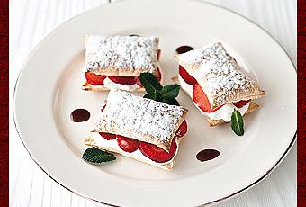 Cuando estén caramelizados se dejan enfriar. Después se cortan por la mitad, se rellenan con la nata y los fresones cortados en rodajas (al gusto), se añaden unas gotitas de vinagre balsámico y se tapan. Para terminar, se les vuelve a poner azúcar Glass por encima y ya están listos para servir!