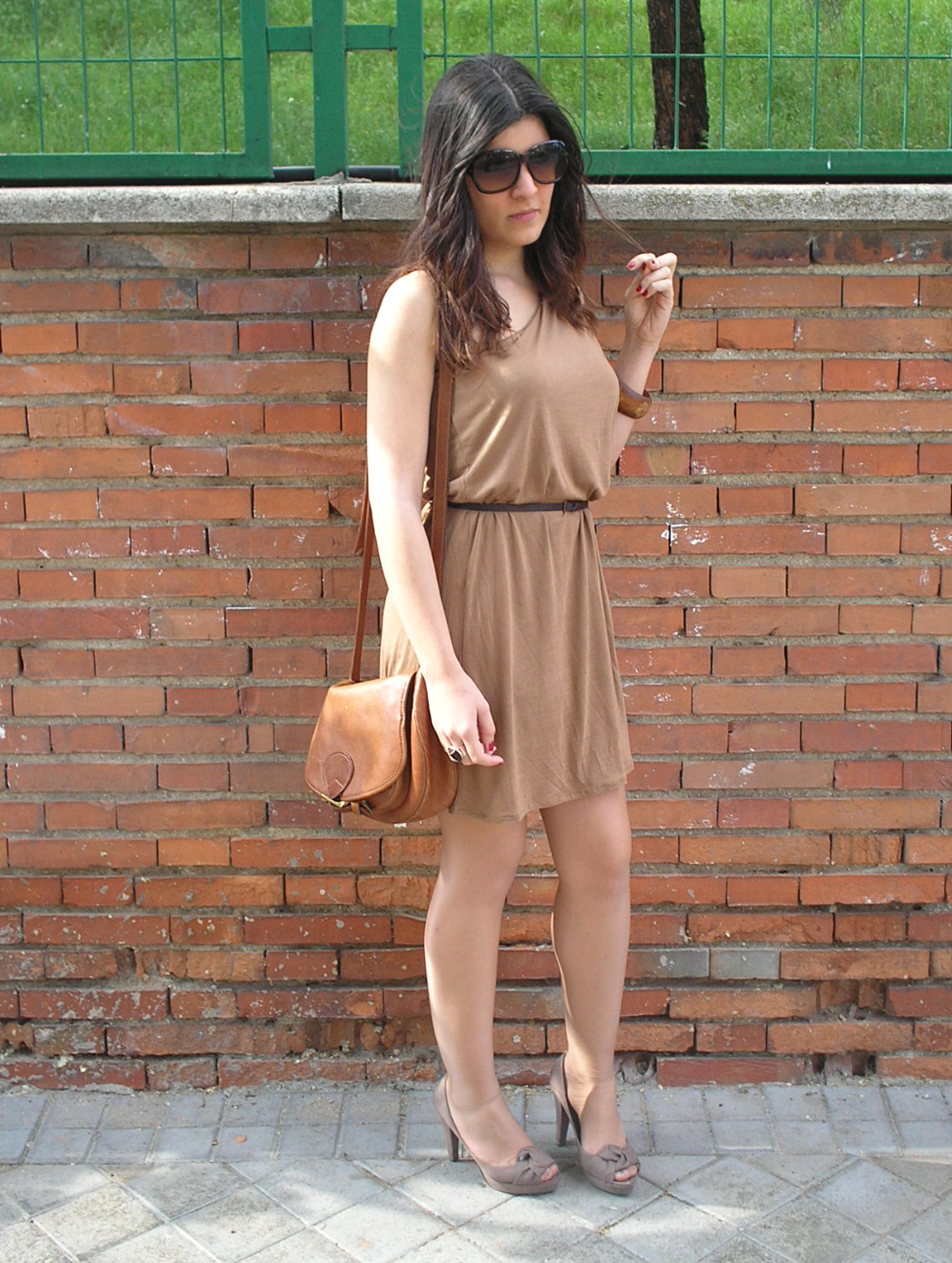 Como complementos esenciales, sugiero estos zapatos de tacón color piedra y de ante, de MARYPAZ; y un bolso de cuero de colgar de Sfera. Creo que ambas prendas son una buena aquisición para el fondo de armario, ya que son fáciles de combinar y sirven para diferentes ocasiones.