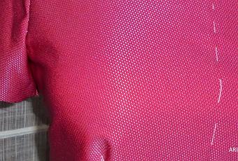 una vez cortado y puesto en prueba lo coloqué en el maniquí y al día siguiente todavía no me lo había probado, así que le pinché en el hombro con un alfiler la cremallera y la otra manga para que no estuvieran dando vueltas por la mesa de costura...................