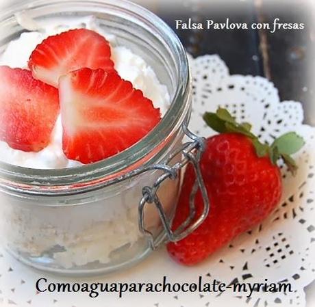 Venga poner muuucha atención como preparar esta falsa Pavlova. Cogeremos unos tarritos de cristal y pondremos un poco de nata montada azucarada , después desmenuzamos un poco de merengue y en el centro ponemos unos trocitos pequeños de fresas. Acabamos con otra capa de nata montada y una fresa laminada encima para decorar y comérnosla claro jijiji.
